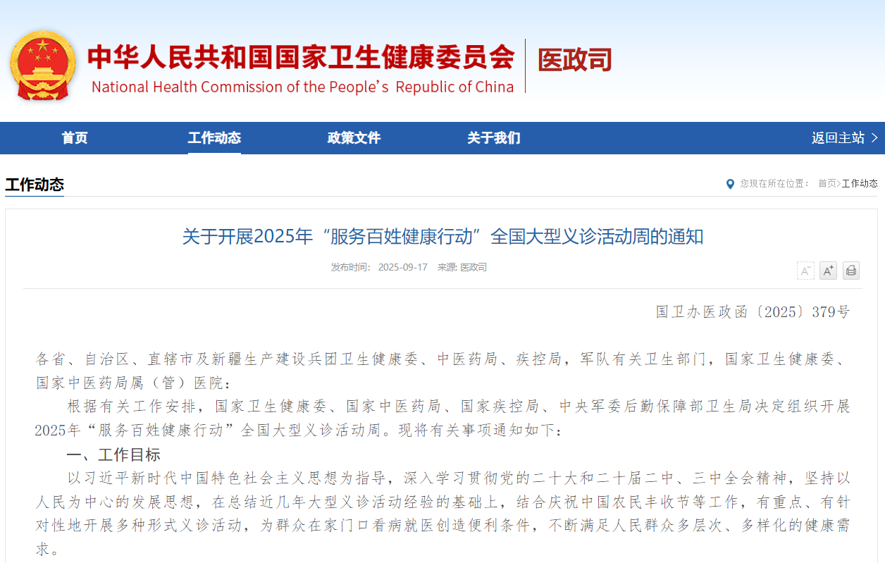 - 关于开展2025年“服务百姓健康行动”全国大型义诊活动周的通知