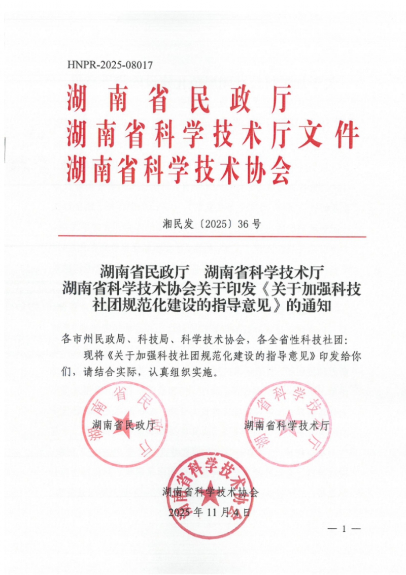 关于加强科技社团规范化建设的指导意见(湘民发〔2025〕36号)