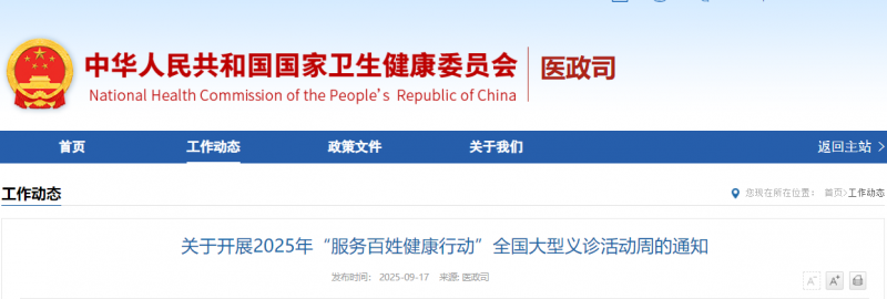 关于开展2025年“服务百姓健康行动”全国大型义诊活动周的通知