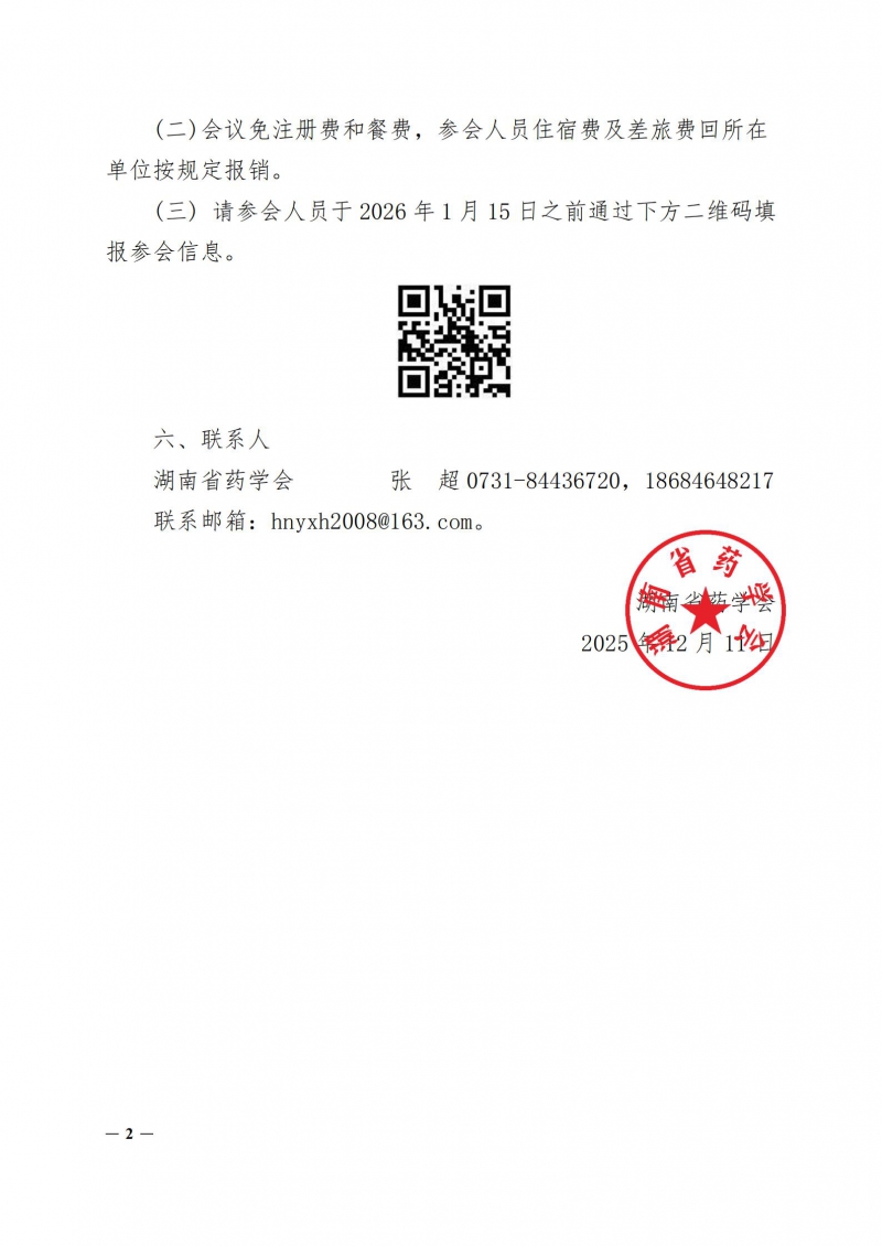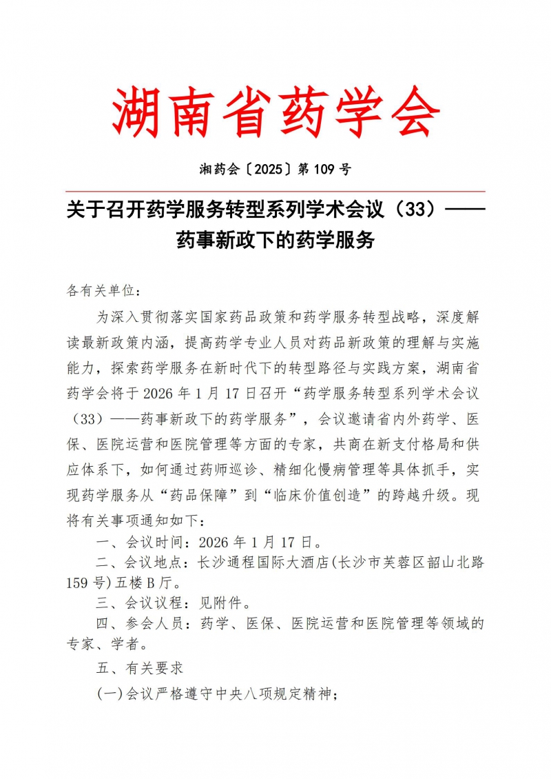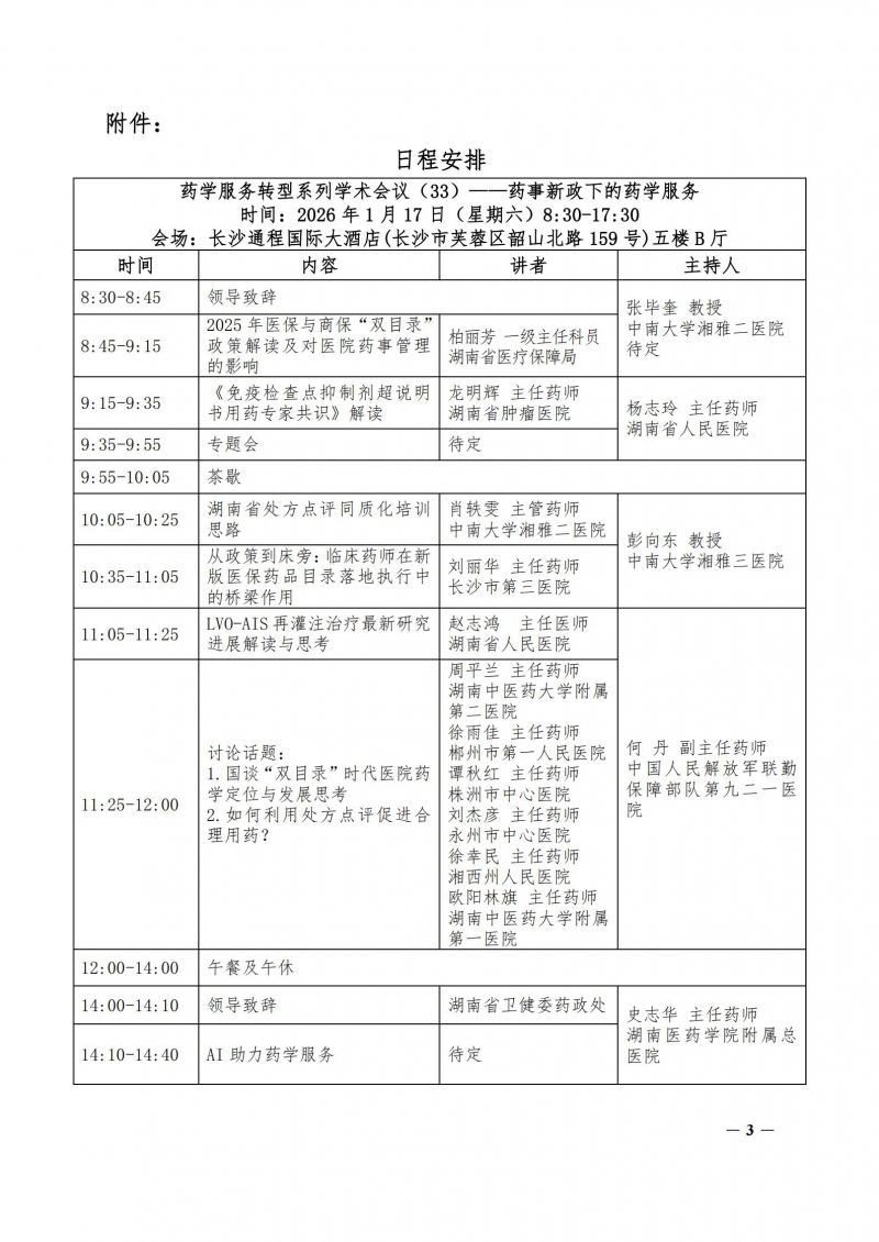 作者 : 张超∣审核:朱运贵∣编辑:李献忠 发布时间 : 2026-01-07 阅读量 : 来源 : 湖南省药学会秘书处