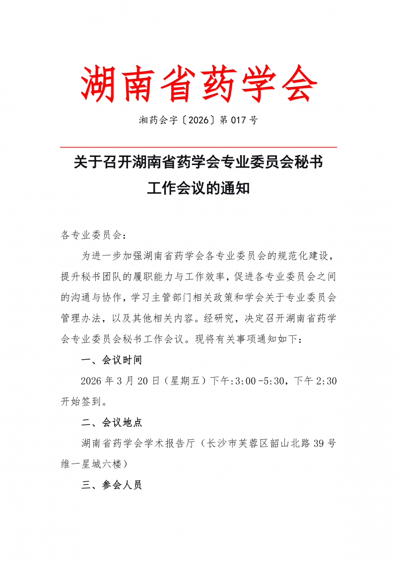 通知下载:/关于召开湖南省药学会专业委员会秘书工作会议的通知.pdf