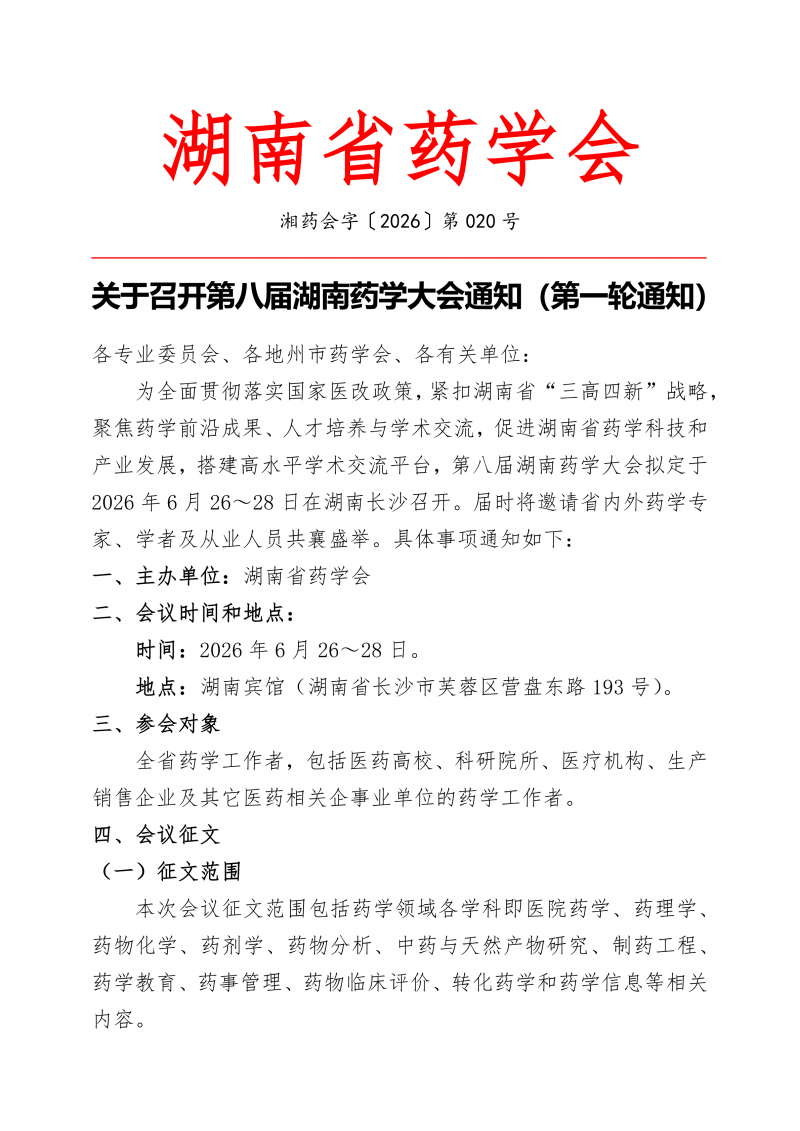 通知下载:/关于召开第八届湖南药学大会通知(第一轮通知).pdf