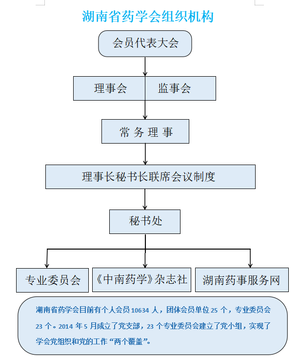 湖南省药学会自成立以来,在政府有关部门和社会各界的大力关心和支持下,在历届理事会的精心带领下,严格遵守学会《章程》的各项规定,团结带领全体会员扎实推进工作开展。经过几代人的砥砺奋进、辛勤耕耘,学会已经发展成为湖南药学人员学术交流、经验分享、资源共享的专业平台,是政府与企业、医疗机构之间,团体会员与会员之间沟通交流的桥梁纽带。学会已由当时会员数十人,发展到目前拥有个人会员一万余人,有医院药学、药物分析、中药天然药物、制药工业、药事管理、药物基因组学、药剂学、药物化学、基层药学、药物临床评价与研究、药房装备与信息技术、药学教育、科学传播、医院制剂与真实事件研究、民族药、药物/器械临床试验与转化、抗肿瘤药物研究与转化、药学服务、放射性药物、麻醉镇痛药物使用与管理、肿瘤营养与疼痛药物管理、静脉用药集中配置23个专业委员会,团体会员单位25个。
